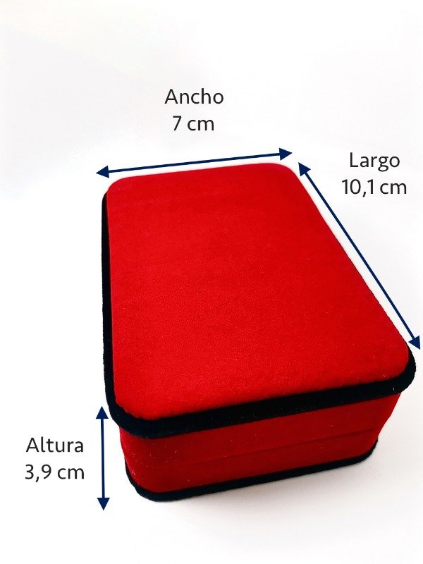 Este elegante estuche de joyería de terciopelo rojo y negro es el regalo perfecto para cualquier ocasión especial. Está hecho de terciopelo de alta calidad en un hermoso color rojo y negro, y tiene un diseño moderno y elegante. El interior está forrado con un suave terciopelo negro para proteger tus joyas.