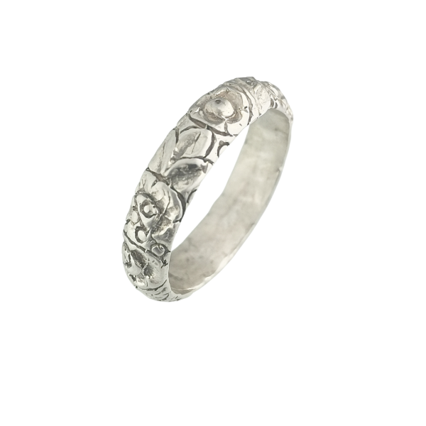 Anillo Rosa cincelada Plata 925.
